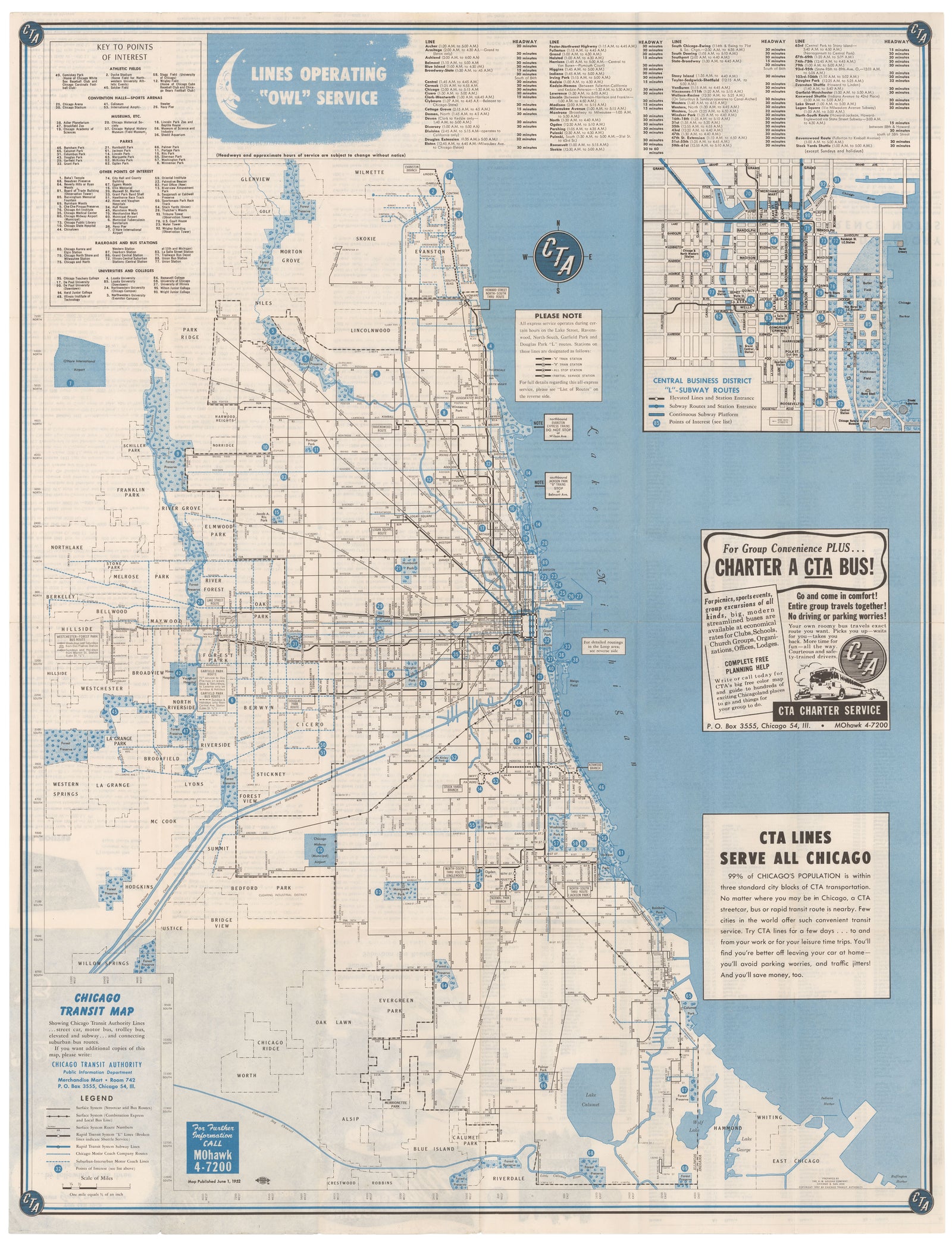Chicago Transit Authority (Illinois) Transit System Map 1952