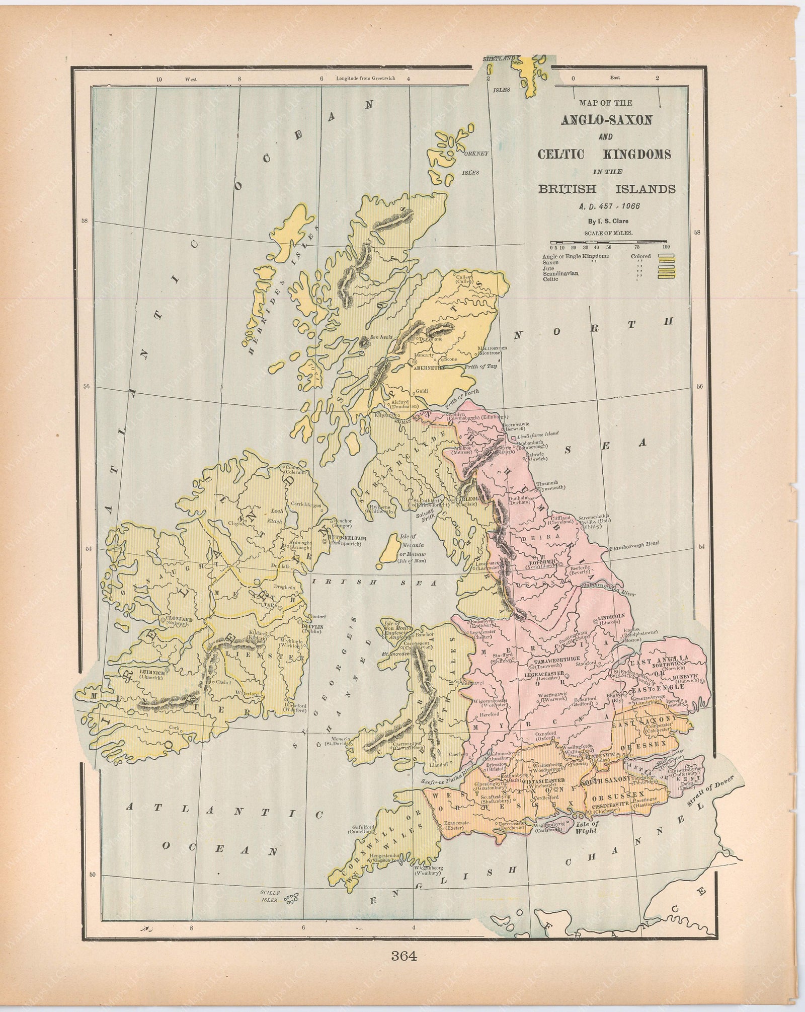 Classical Map 1894: Anglo-Saxon and Celtic Kingdoms in the British Isles A.D. 457-1066