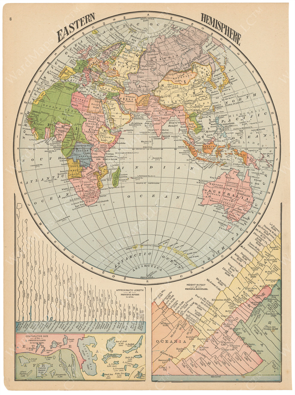 Eastern Hemisphere Projection and Comparative Geography 1910