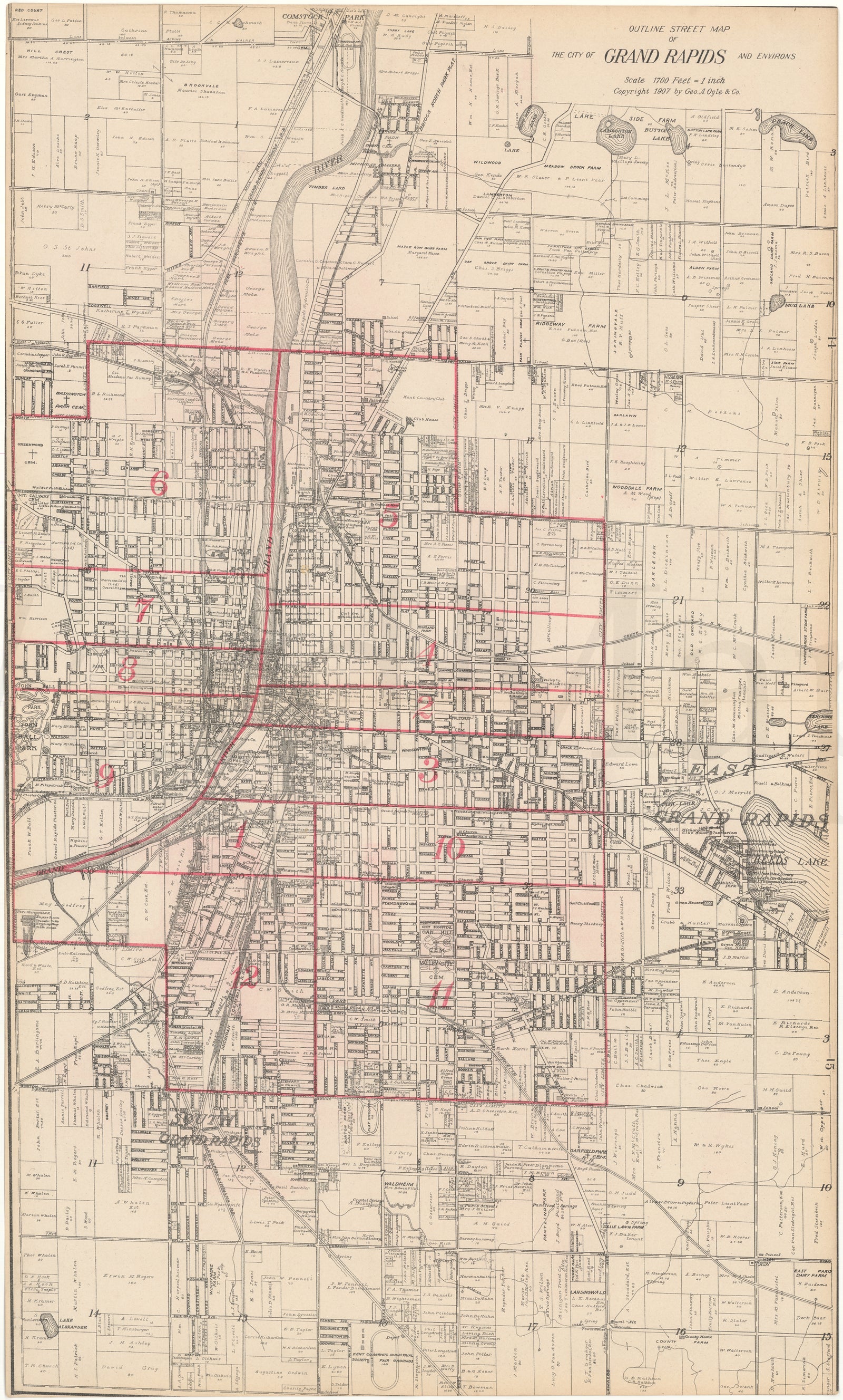 Grand Rapids, Michigan 1907: Outline Street Map