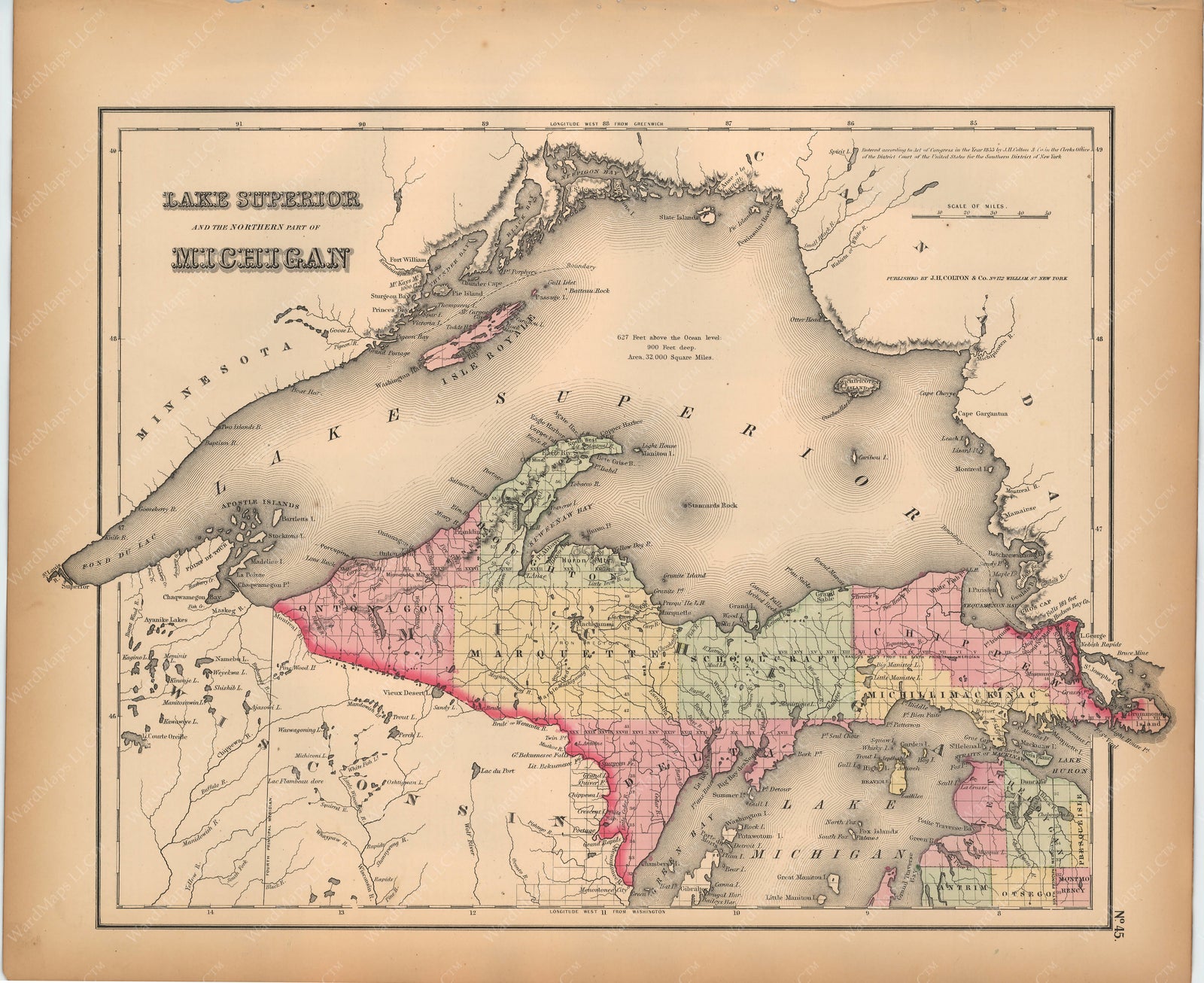 • Will watermarks appear on printed maps? The "WardMaps LLC" watermarks seen on maps displayed on the website will not appear on either the authentic antique maps nor fine art map reproductions. The watermark is only visible on maps displayed on our website.