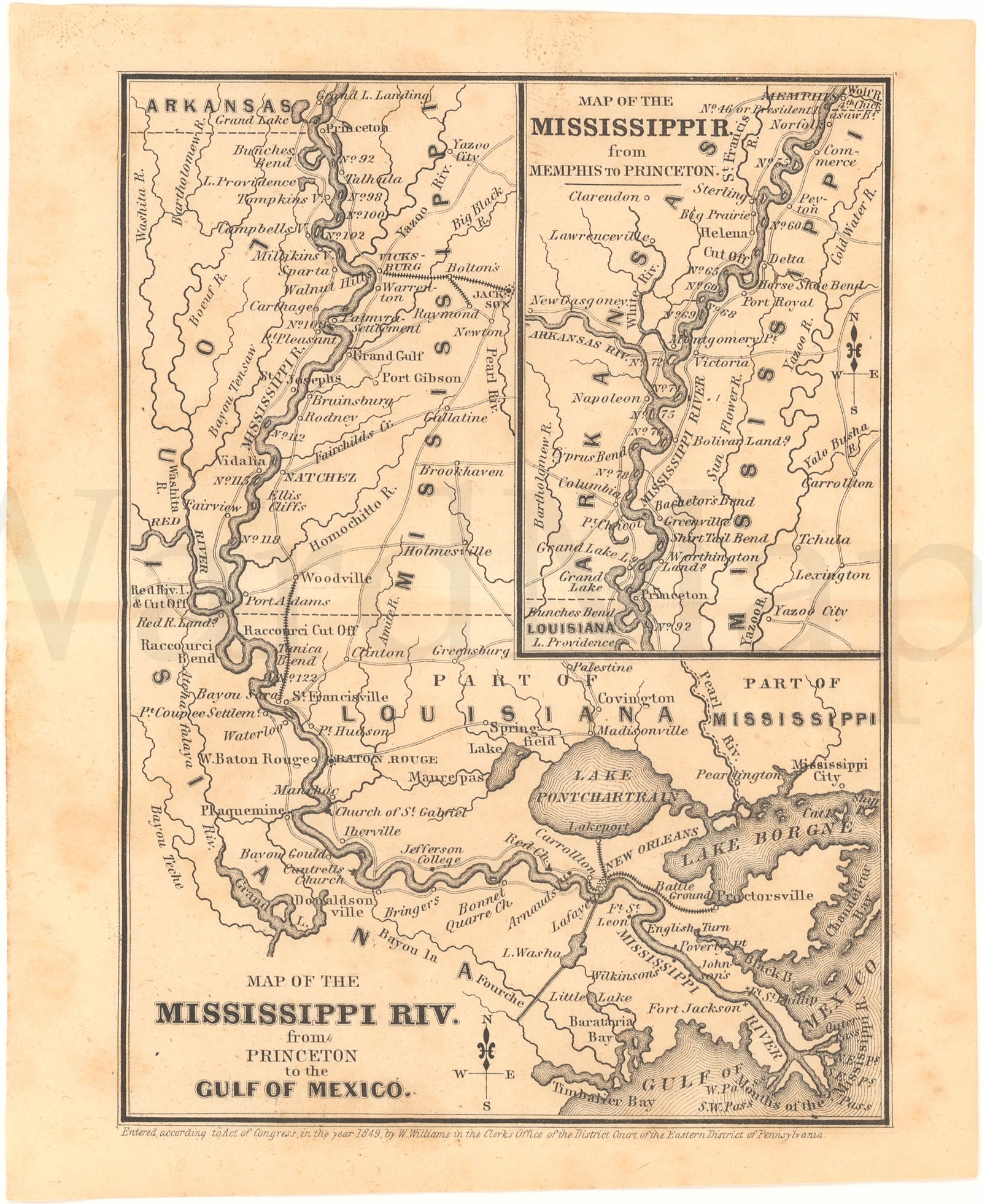 Mississippi River from Memphis (Tennessee) to the Gulf of Mexico 1850
