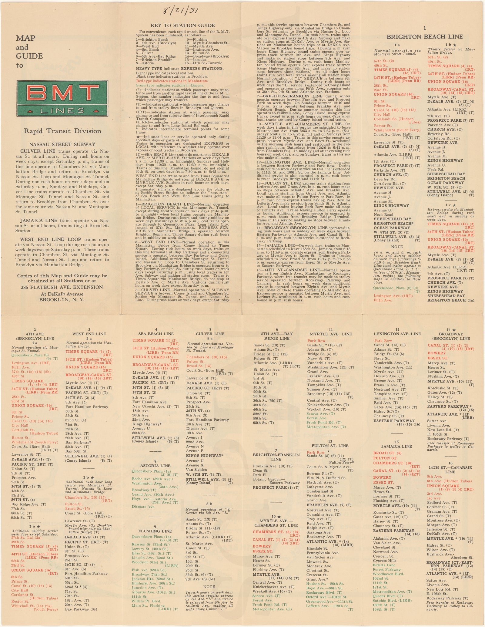 New York City Subway 1931: BMT Lines Rapid Transit Division