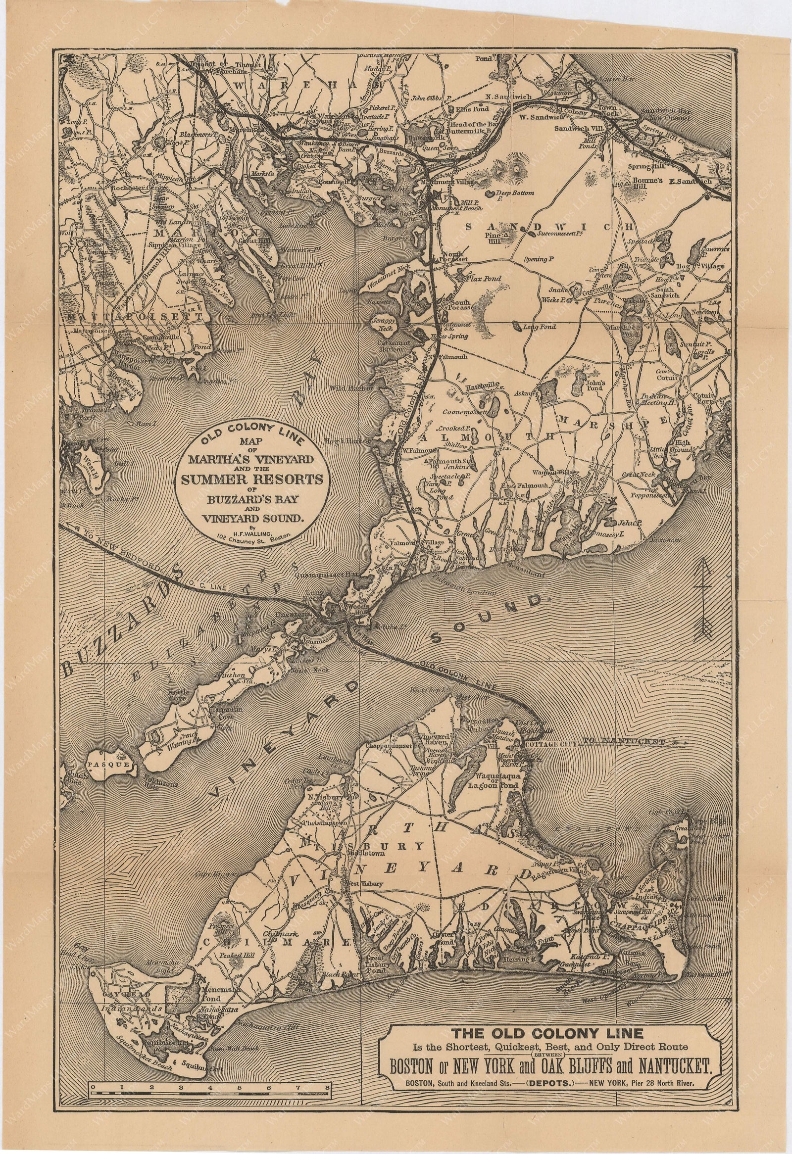 Title: Old Colony Line Map of Martha's Vineyard and the Summer Resorts of Buzzards Bay and Vineyard Sound, Massachusetts 1888
