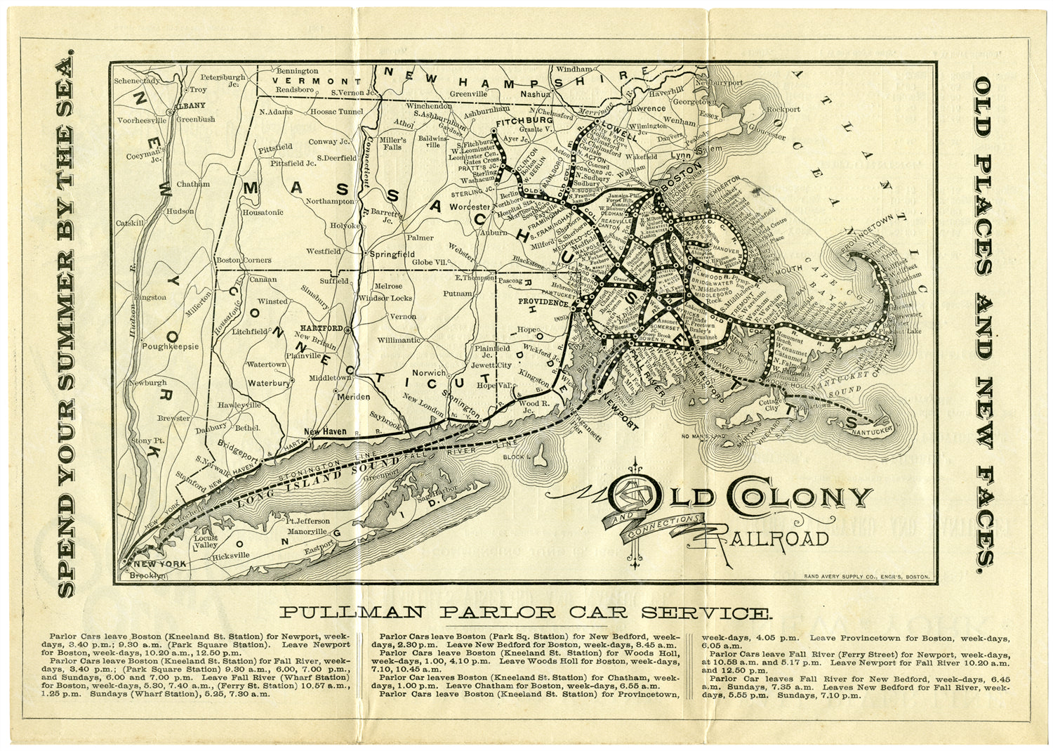Old Colony Railroad Timetable Map, 1891
