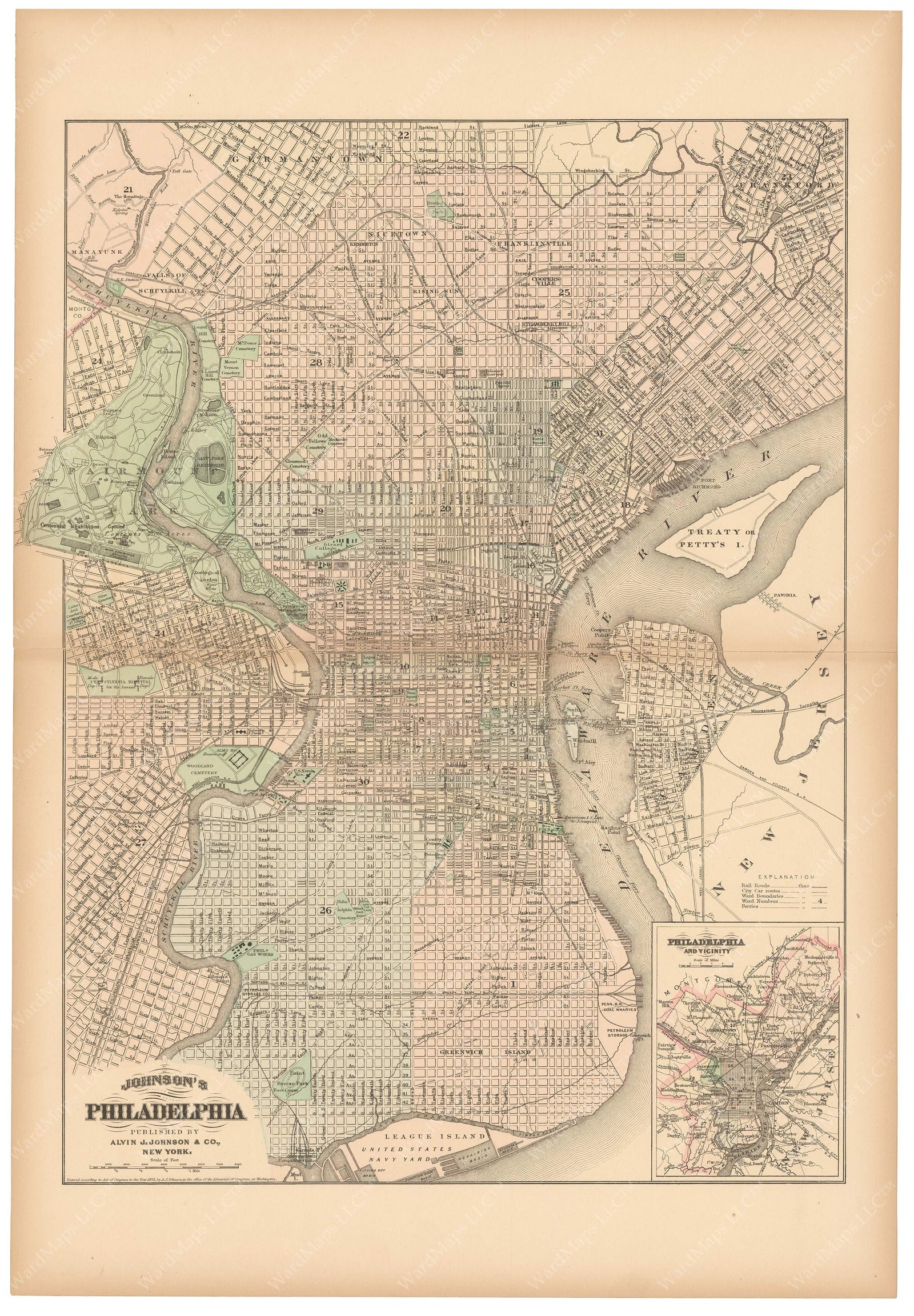 • Will watermarks appear on printed maps? The "WardMaps LLC" watermarks seen on maps displayed on the website will not appear on either the authentic antique maps nor fine art map reproductions. The watermark is only visible on maps displayed on our website.