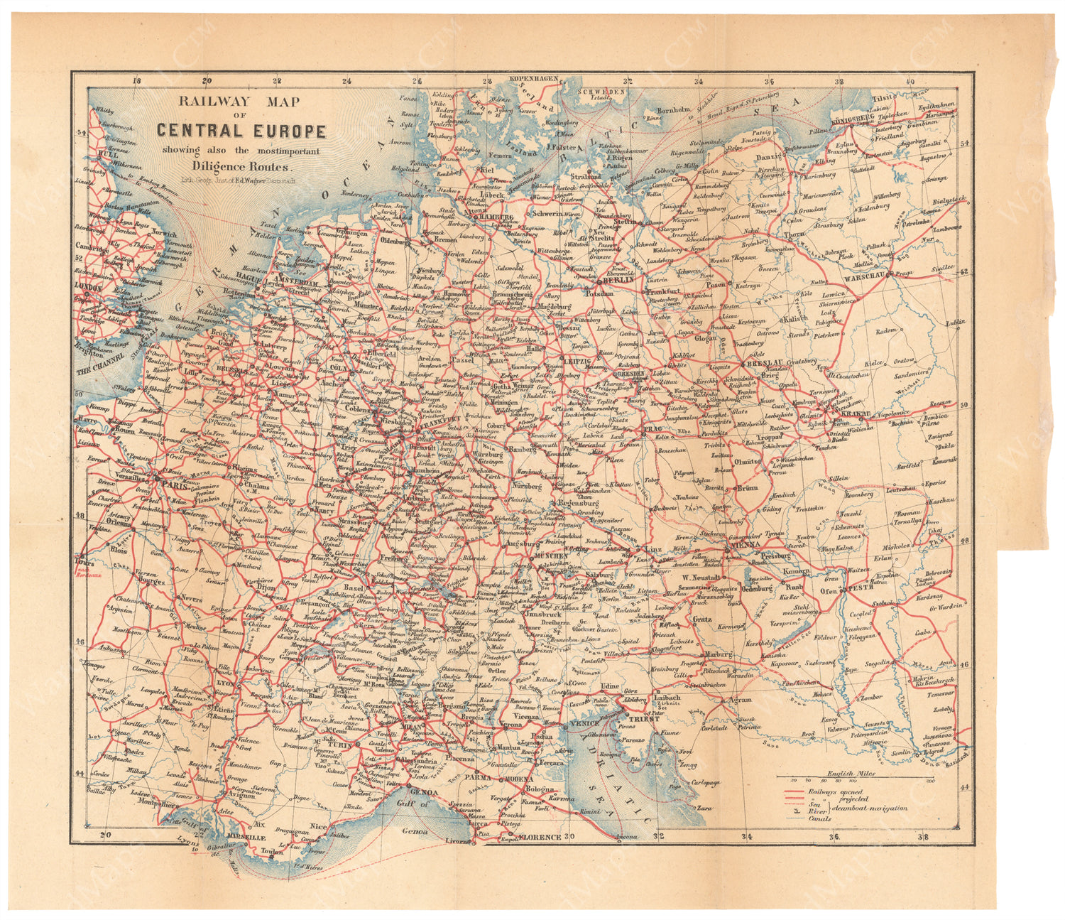 Railway Map of Central Europe 1868