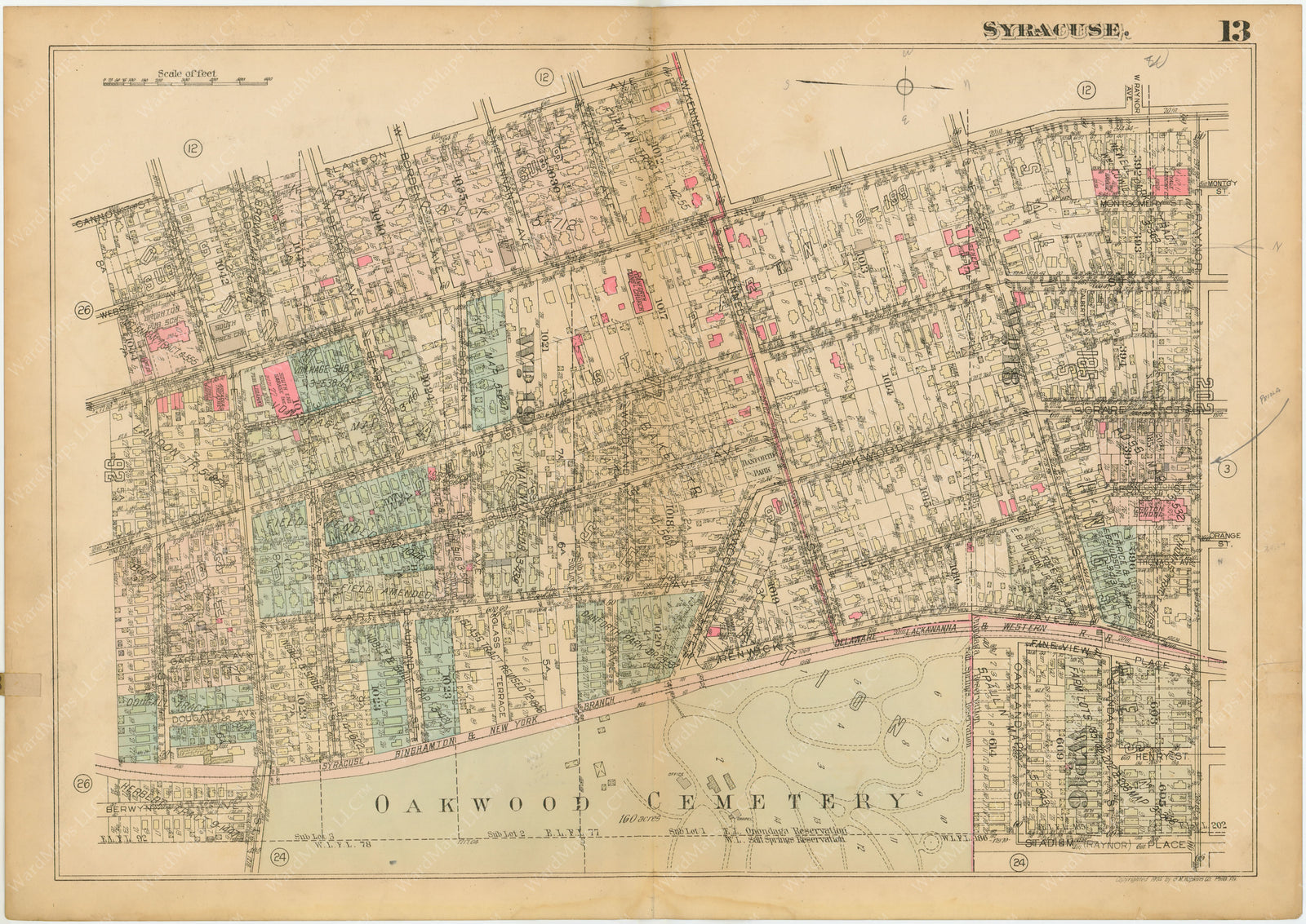 • What are Cadastral Maps? We specialize in cadastral maps, cartographic time capsules representing the natural and built forms of locales across America. Cadastral maps represent structures, building materiality, property ownership, and infrastructure. Cadastral maps were used by municipalities, real estate firms, attorneys, surveyors, insurance companies and others that needed a detailed record of where properties were located, what was built on them, and who owned them. Cadastral map makers used a graphic code of bright colors to indicate the construction types of the buildings, i.e. pink for brick and yellow for wood. Cadastral maps were published to paying subscribers in bound atlases. Each cadastral atlas depicted a specific county, city or neighborhood and typically had 20-40 maps known as "plates." Each plate showed a specific geographic area, usually only a few city blocks or a portion of a town. A few plates depicted part or all of one city ward, hence our moniker, "ward maps."