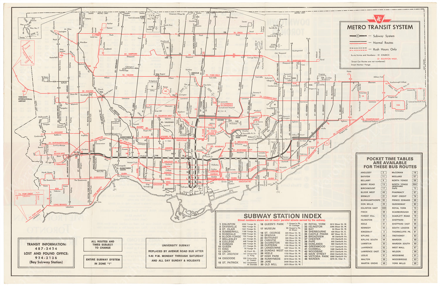 Toronto Transit Commission System Map 1969 June