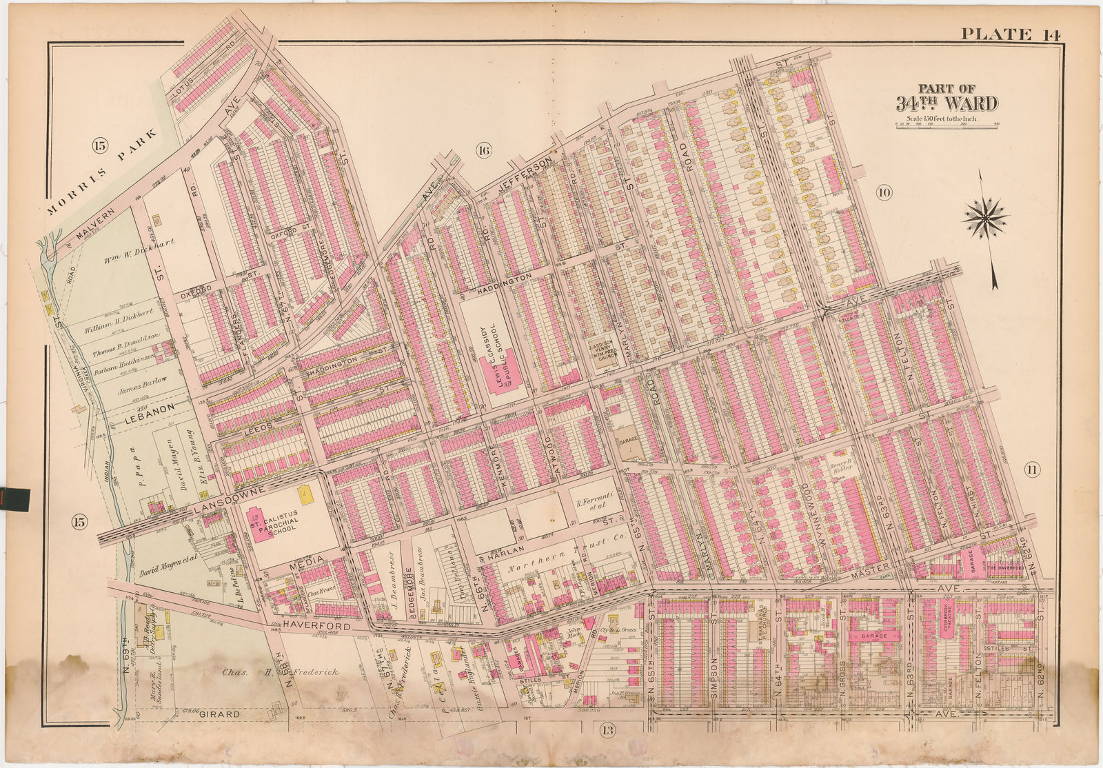 • What are Cadastral Maps? We specialize in cadastral maps, cartographic time capsules representing the natural and built forms of locales across America. Cadastral maps represent structures, building materiality, property ownership, and infrastructure. Cadastral maps were used by municipalities, real estate firms, attorneys, surveyors, insurance companies and others that needed a detailed record of where properties were located, what was built on them, and who owned them. Cadastral map makers used a graphic code of bright colors to indicate the construction types of the buildings, i.e. pink for brick and yellow for wood. Cadastral maps were published to paying subscribers in bound atlases. Each cadastral atlas depicted a specific county, city or neighborhood and typically had 20-40 maps known as "plates." Each plate showed a specific geographic area, usually only a few city blocks or a portion of a town. A few plates depicted part or all of one city ward, hence our moniker, "ward maps."