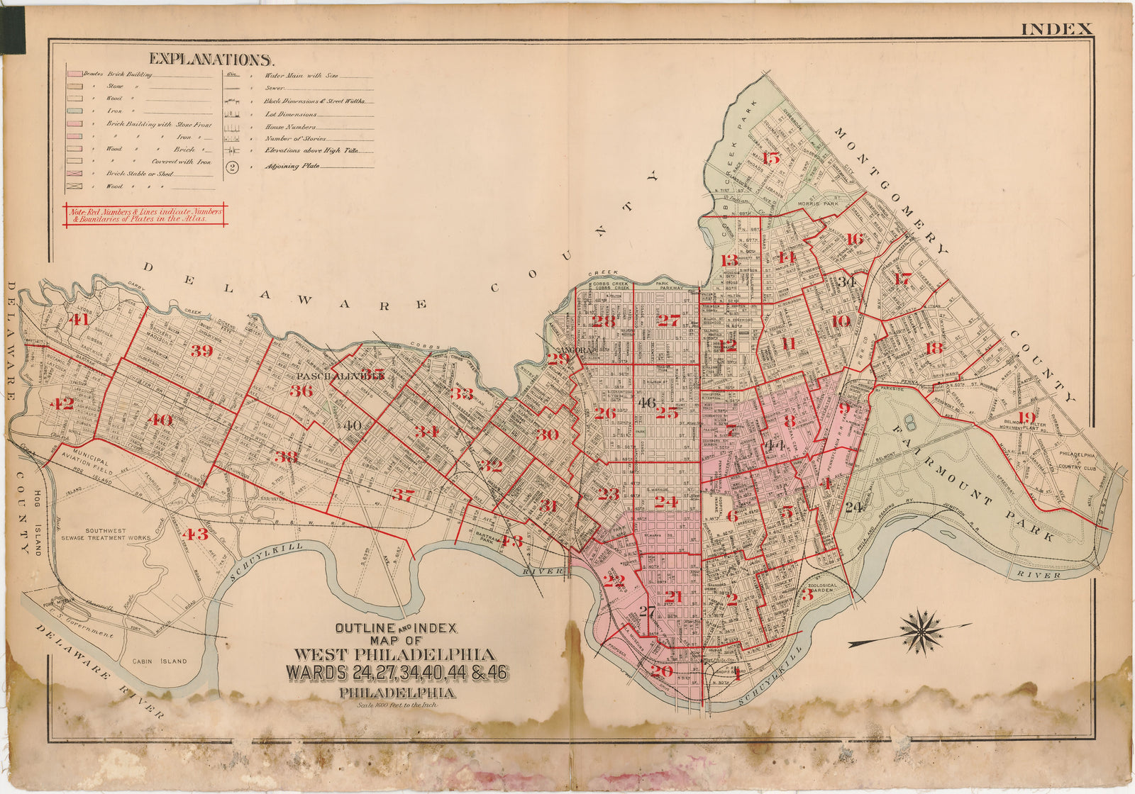 • What are Cadastral Maps? We specialize in cadastral maps, cartographic time capsules representing the natural and built forms of locales across America. Cadastral maps represent structures, building materiality, property ownership, and infrastructure. Cadastral maps were used by municipalities, real estate firms, attorneys, surveyors, insurance companies and others that needed a detailed record of where properties were located, what was built on them, and who owned them. Cadastral map makers used a graphic code of bright colors to indicate the construction types of the buildings, i.e. pink for brick and yellow for wood. Cadastral maps were published to paying subscribers in bound atlases. Each cadastral atlas depicted a specific county, city or neighborhood and typically had 20-40 maps known as "plates." Each plate showed a specific geographic area, usually only a few city blocks or a portion of a town. A few plates depicted part or all of one city ward, hence our moniker, "ward maps."