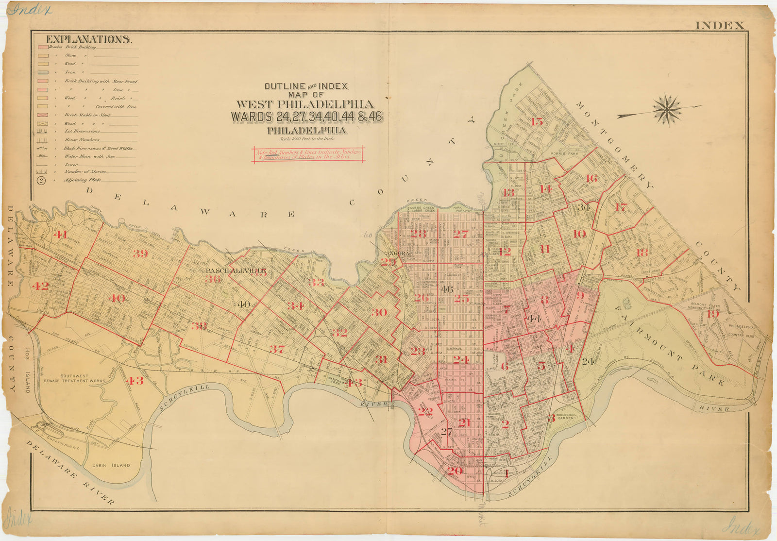 • What are Cadastral Maps? We specialize in cadastral maps, cartographic time capsules representing the natural and built forms of locales across America. Cadastral maps represent structures, building materiality, property ownership, and infrastructure. Cadastral maps were used by municipalities, real estate firms, attorneys, surveyors, insurance companies and others that needed a detailed record of where properties were located, what was built on them, and who owned them. Cadastral map makers used a graphic code of bright colors to indicate the construction types of the buildings, i.e. pink for brick and yellow for wood. Cadastral maps were published to paying subscribers in bound atlases. Each cadastral atlas depicted a specific county, city or neighborhood and typically had 20-40 maps known as "plates." Each plate showed a specific geographic area, usually only a few city blocks or a portion of a town. A few plates depicted part or all of one city ward, hence our moniker, "ward maps."