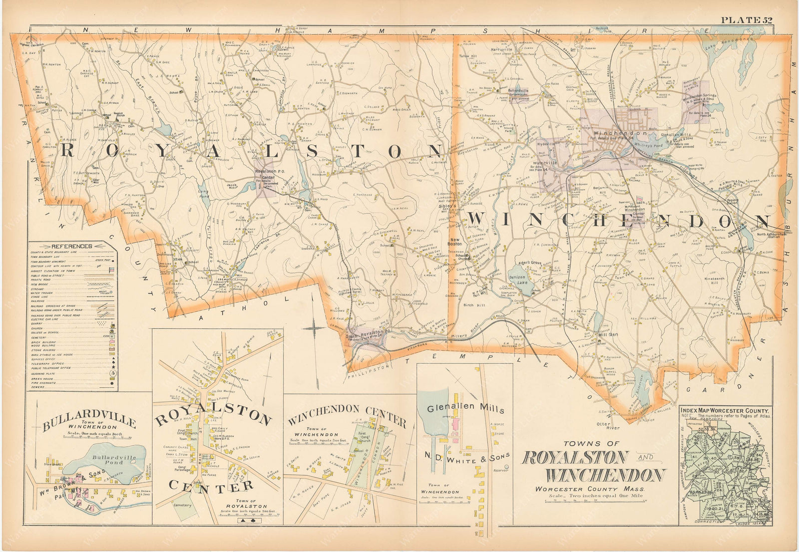 Worcester County, Massachusetts 1898 Plate 052: Royalston and Winchendon